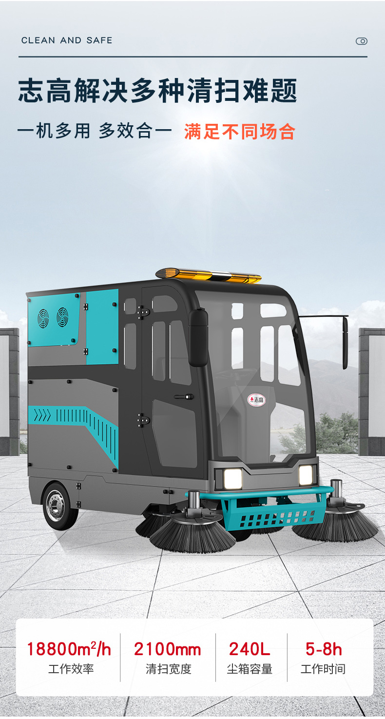 志高 ZG-E210 封闭驾驶式扫地车扫地车,清扫车,厂家直销,省30%成本,工作时间:5-7h,重量:700kg,效率:16000m2/h,大于15人工作效率,干净不留痕,免费试机,买贵包退.专业的售后团队,免费上门指导操作和维护.志高 ZG-210分普通款和锂电款,想进一步了解,请咨询在线客服或拨打19334046549官方免费热线,客服详细解答产品参数和最新活动价格.